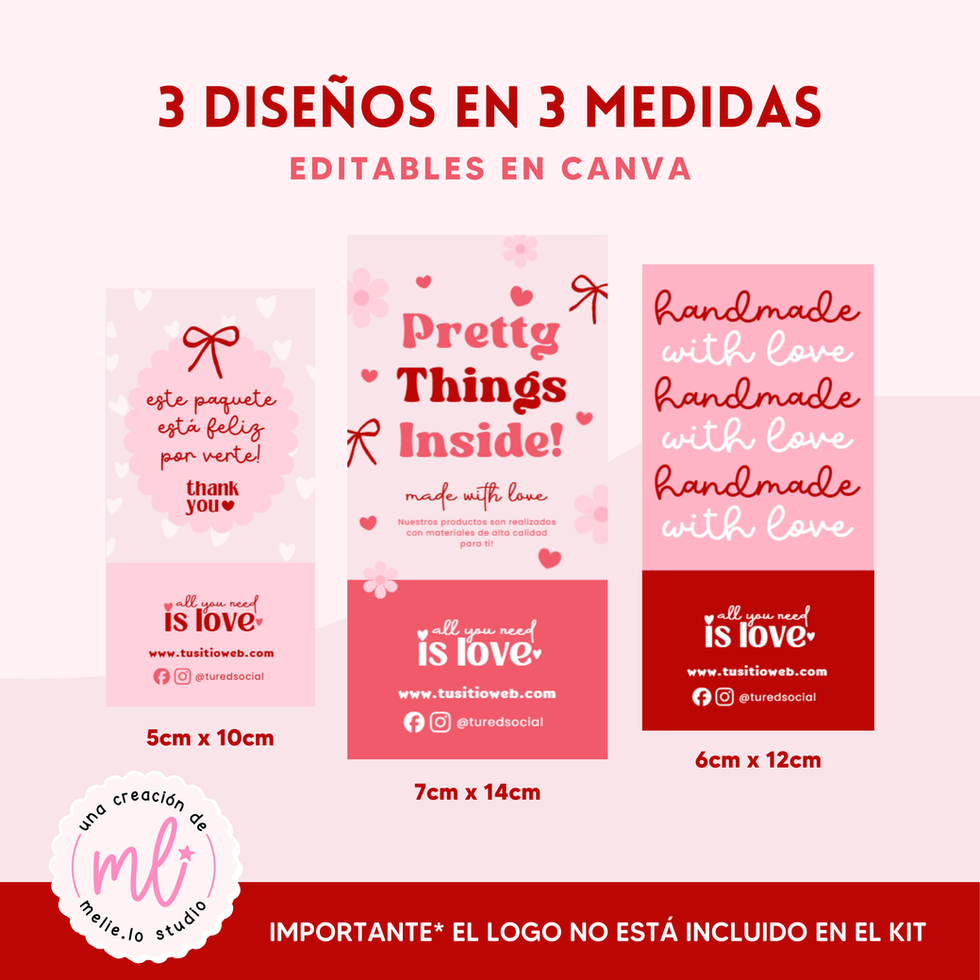 Plantillas de etiquetas de producto para cajas de la colección All You Need is Love.