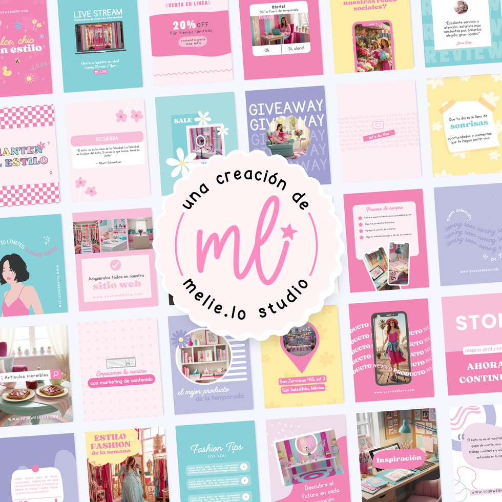 Kit de plantillas para Instagram de la colección Bloom Chic ideal para comenzar a crear publicaciones llamativas y profesionales en redes sociales en cualquier temporada. Las plantillas tienen un diseño colorido con temática Chic